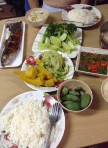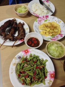 とにかく、ほぼ毎日手作りのタイ料理が食べられるのは幸せ~!これで、2日間で二人分食費300THB(980円)ということは1日150THB(490円)